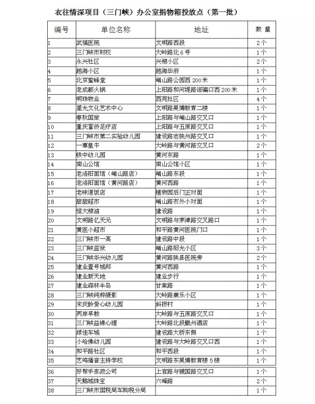 据介绍,该项目是由中国循环经济协会废纺联盟等多家爱心单位共同发起。“大家可将闲置衣物投入箱内,每个捐物箱都有人员进行日常维护,会定期把衣物收集送至郑州基地,由专人进行分拣、消毒、整理,再送给需要的人。”爱心之家会长孙梅丽说,